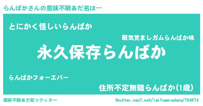| 男性向けラノベタイトル風あだ名 | 『らんばかという概念が存在しない退屈な世界 』 |