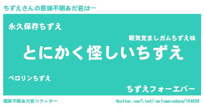 | ポケモン風あだ名 | 『チズゴンZ』『ヒチズエ』『ゼニチズ』 |