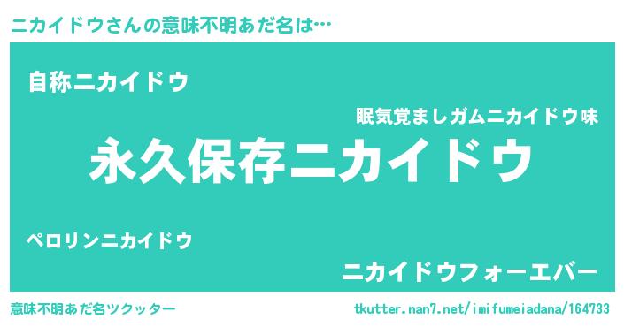 | 男性向けラノベタイトル風あだ名 | 『ニカイドウという概念が存在しない退屈な世界 』 |