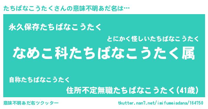 | 男性向けラノベタイトル風あだ名 | 『転生したらたちばなこうたくだった件』 |