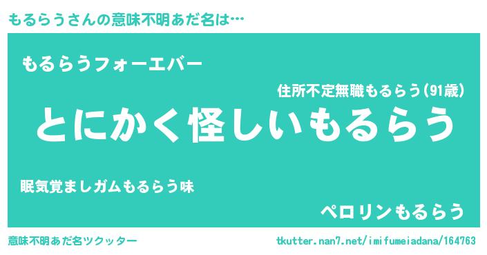 | 胡散臭い通販商品みたいなあだ名 | 『全米が絶賛したサプリメント…その名も「もるらう」』 |