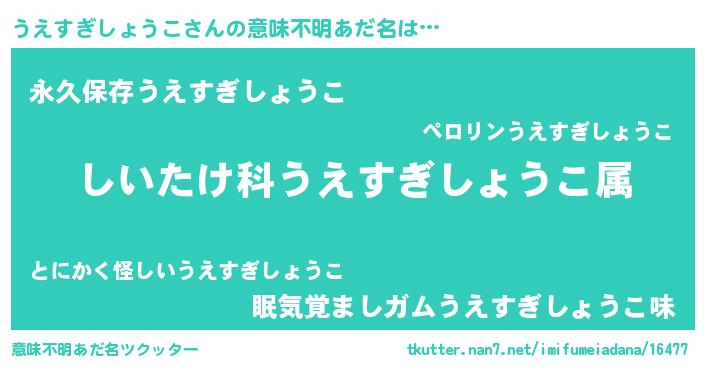 | ヘコむあだ名 | 『うえすぎしょうこ(笑)』『うえもー』 |