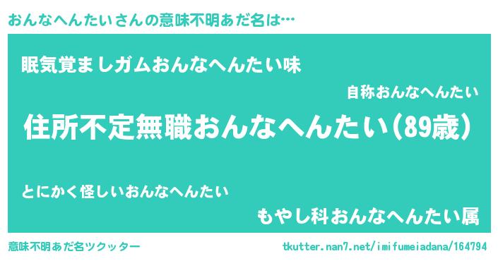 | 胡散臭い通販商品みたいなあだ名 | 『あなたにだけ特別に提供する世界で10本だけ現存している希少なブランデー…その名も「おんなへんたい」』 |