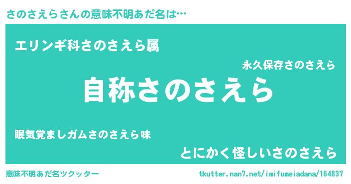 | 女子向けラノベタイトル風あだ名 | 『さのさえらなんてお断りですっ。』 |