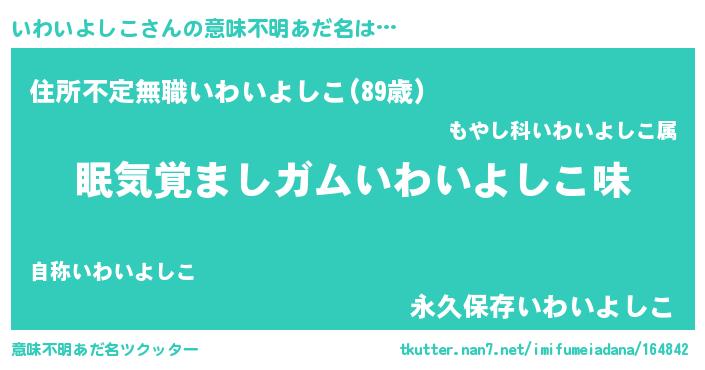 | ヘコむあだ名 | 『いわいよしこ(笑)』『いわぷりん』 |