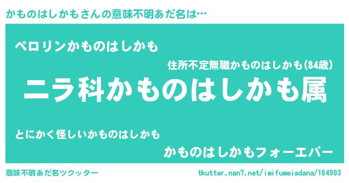 | 胡散臭い通販商品みたいなあだ名 | 『億万長者になれる水晶球…その名も「かものはしかも」』 |