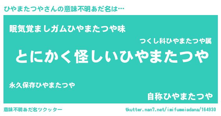 | 料理風あだ名 | 『ひやまたつやの豆乳スープ』 |