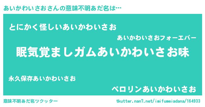 | 欧米人風あだ名 | 『ダニエルあいかわいさお』 |