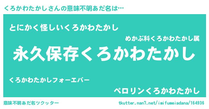 | 男性向けラノベタイトル風あだ名 | 『くろかわたかしという概念が存在しない退屈な世界 』 |