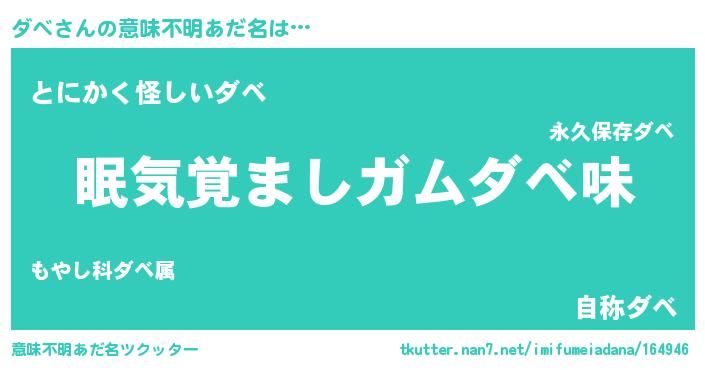 | ヘコむあだ名 | 『ダベを』『ダベ(震え声)』 |
