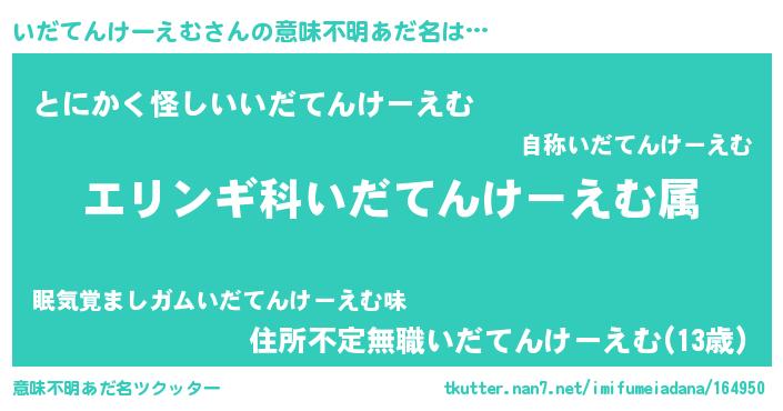| 伝説のあだ名 | 『孤高の遊び人いだてんけーえむ』 |