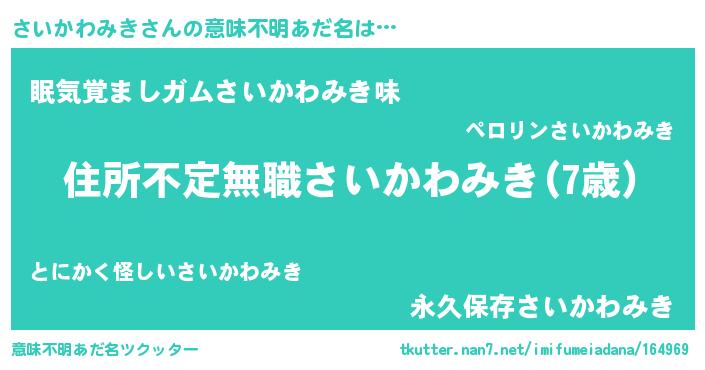 | ヘコむあだ名 | 『さいかわみき(笑)』『さいもー』 |