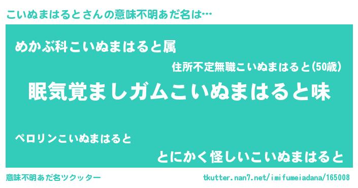 | 胡散臭い通販商品みたいなあだ名 | 『モンドセレクションを受賞した隕石のかけら…その名も「こいぬまはると」』 |