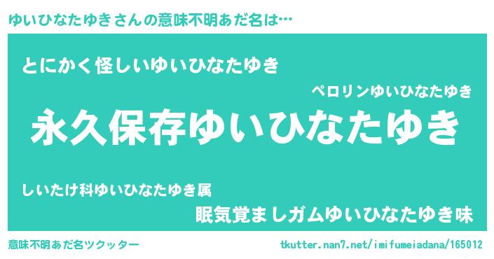 | ポケモン風あだ名 | 『ゼニユイ』『ヒユイヒナタユキ』 |