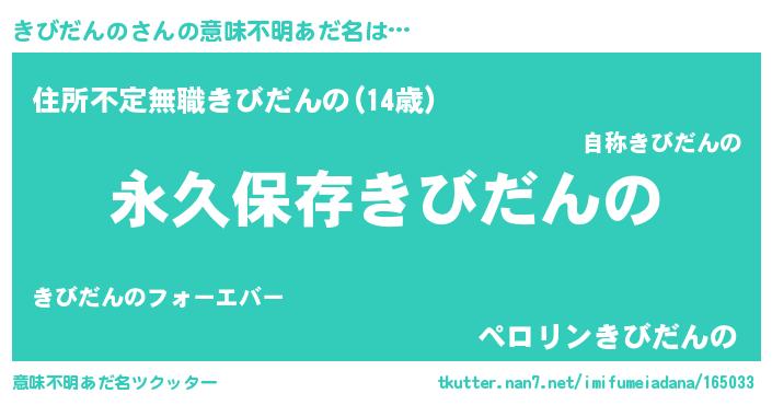 | 男性向けラノベタイトル風あだ名 | 『きびだんのという概念が存在しない退屈な世界 』 |