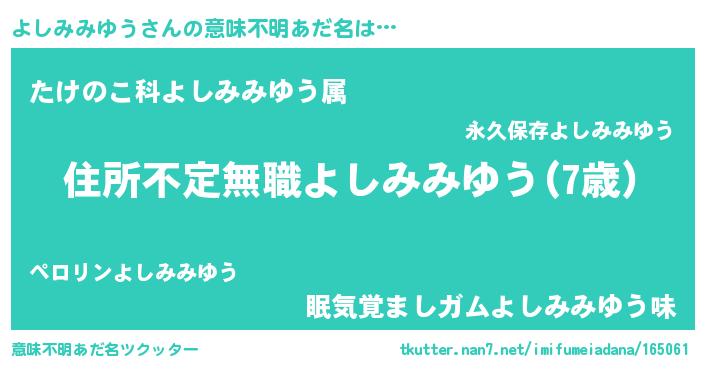 | ヘコむあだ名 | 『よしみみゆう(笑)』『よしっふぃ~』 |