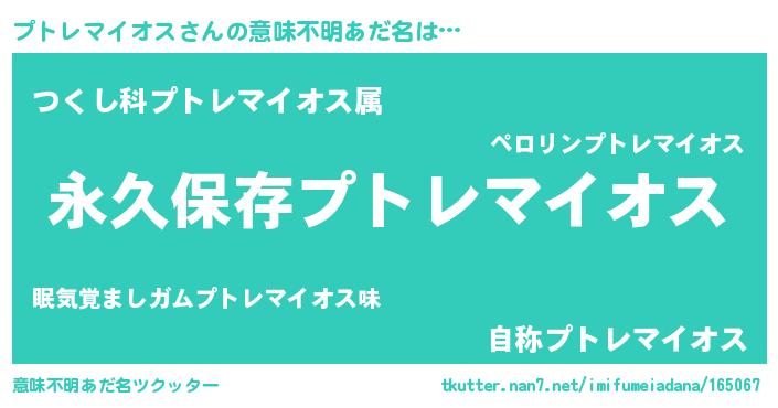 | ヘコむあだ名 | 『プトレマイオス(笑)』『プトっふぃ~』 |