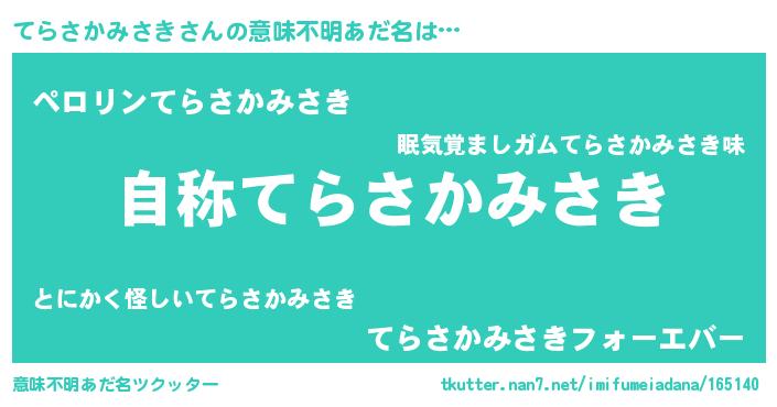 | 男性向けラノベタイトル風あだ名 | 『Re:てらさかみさきから始める異世界生活』 |