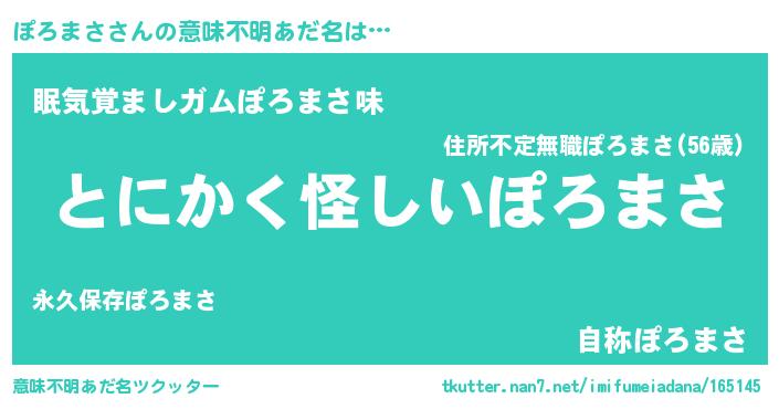 | 欧米人風あだ名 | 『ぽろまさ・ステッグマイヤー』 |