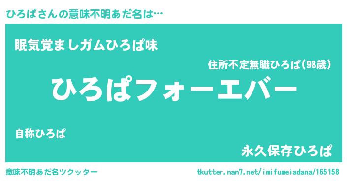 | ヒーロー風カッコイイあだ名 | 『ウルトラひろぱマン』『ネオヒロパ』 |