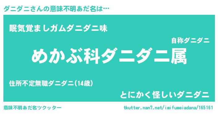| ヘコむあだ名 | 『ダニぷりん』『ダニもー』 |