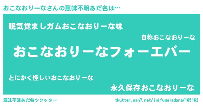 | 欧米人風あだ名 | 『おこなおりーなクリステル』 |