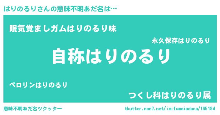 | 男性向けラノベタイトル風あだ名 | 『Re:はりのるりから始める異世界生活』 |