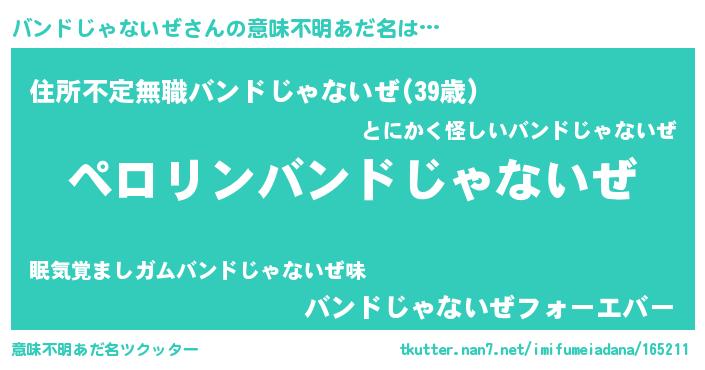 | 胡散臭い通販商品みたいなあだ名 | 『必ず成功するブレスレット…その名も「バンドじゃないぜ」』 |