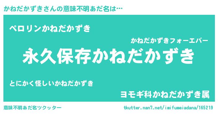 | 胡散臭い通販商品みたいなあだ名 | 『来世でも幸せになれる健康食品…その名も「かねだかずき」』 |