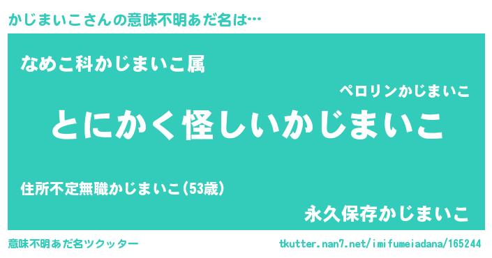 | 男性向けラノベタイトル風あだ名 | 『かじまいこの嫁は女の子じゃないと思った?』 |
