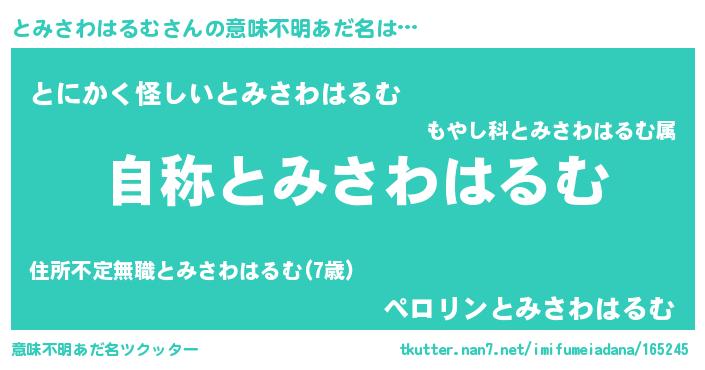 | 男性向けラノベタイトル風あだ名 | 『魔法科高校のとみさわはるむ』 |