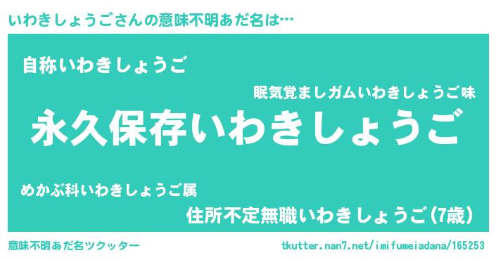 | 胡散臭い通販商品みたいなあだ名 | 『前代未聞の健康食品…その名も「いわきしょうご」』 |