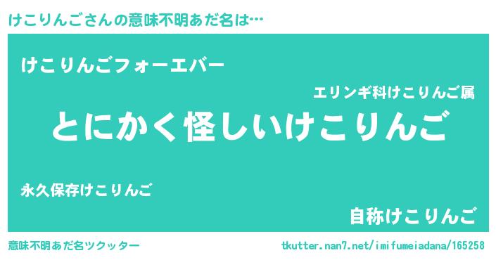 | 胡散臭い通販商品みたいなあだ名 | 『伝統あるサプリメント…その名も「けこりんご」』 |