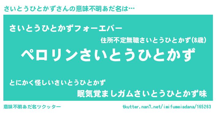 | 胡散臭い通販商品みたいなあだ名 | 『モテモテ間違いなし水晶球…その名も「さいとうひとかず」』 |