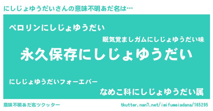 にしじょゆうだいさんの意味不明あだ名をツクッター!