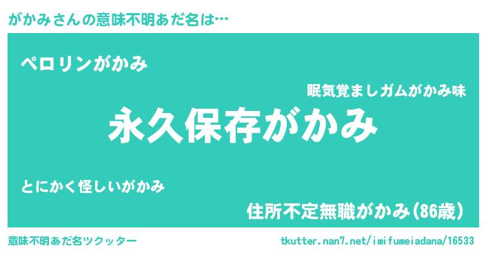 | 胡散臭い通販商品みたいなあだ名 | 『来世でも幸せになれる健康食品…その名も「がかみ」』 |