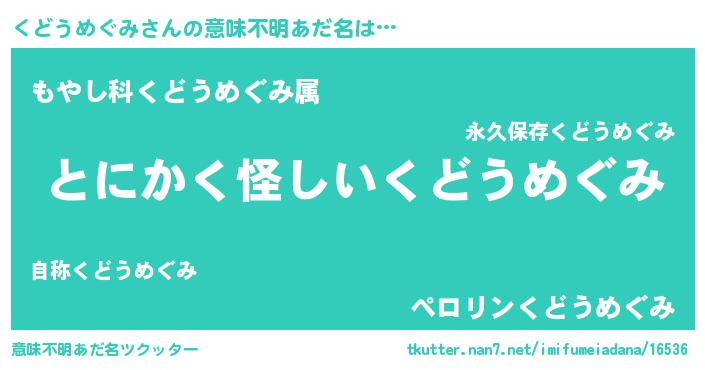 | ポケモン風あだ名 | 『ヒクドウメグミ』『クドキング』 |