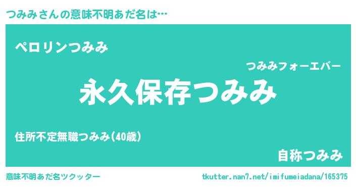 | 胡散臭い通販商品みたいなあだ名 | 『来世でも幸せになれる健康食品…その名も「つみみ」』 |
