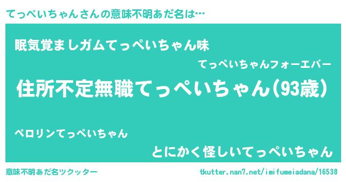 | 男性向けラノベタイトル風あだ名 | 『この素晴らしい世界にてっぺいちゃんを!』 |