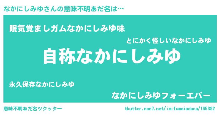 男性向けラノベタイトル風あだ名 | 『Re:なかにしみゆから始める異世界生活』 |