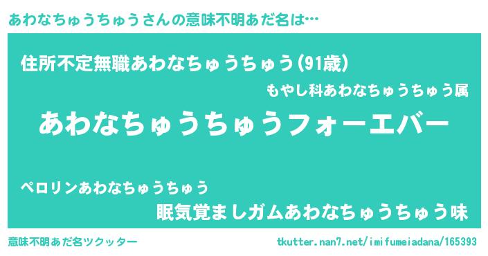 | 欧米人風あだ名 | 『あわなちゅうちゅうクリステル』 |
