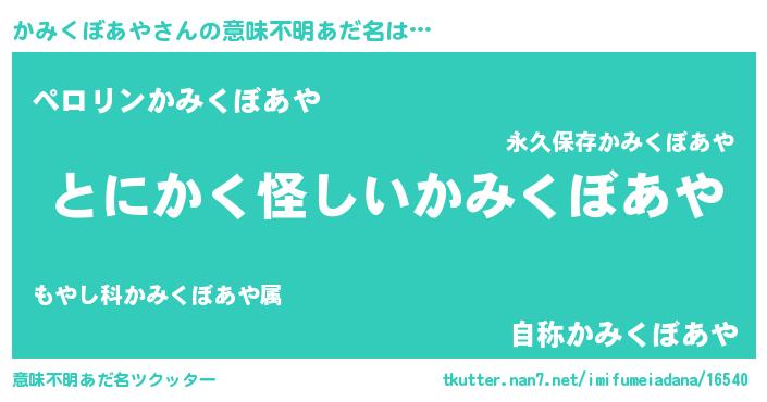 | 胡散臭い通販商品みたいなあだ名 | 『伝統あるサプリメント…その名も「かみくぼあや」』 |