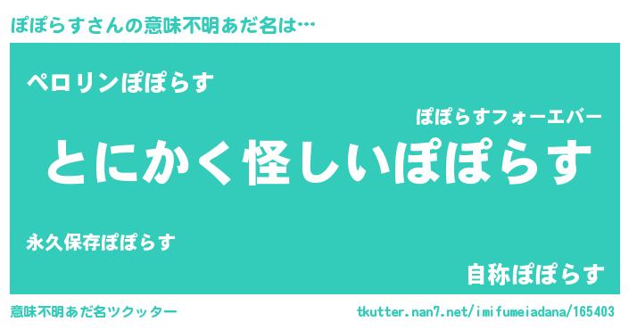 | 女子向けラノベタイトル風あだ名 | 『ぽぽらすは平凡を望む』『闇のぽぽらす』 |
