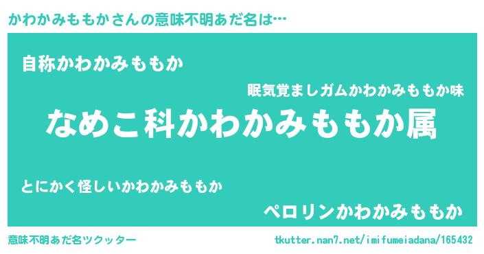 | 男性向けラノベタイトル風あだ名 | 『転生したらかわかみももかだった件』 |