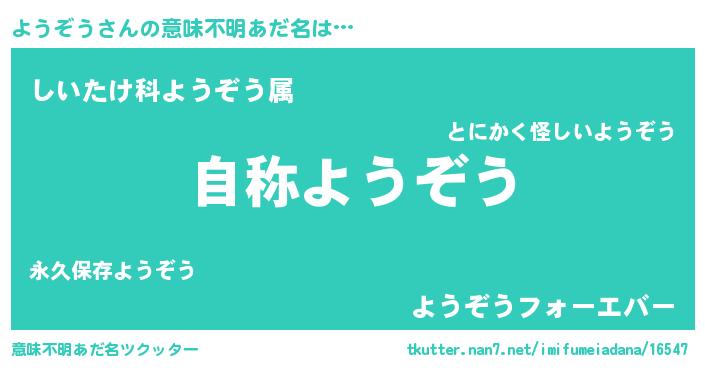 | 胡散臭い通販商品みたいなあだ名 | 『ガンによく効くアガリクス…その名も「ようぞう」』 |