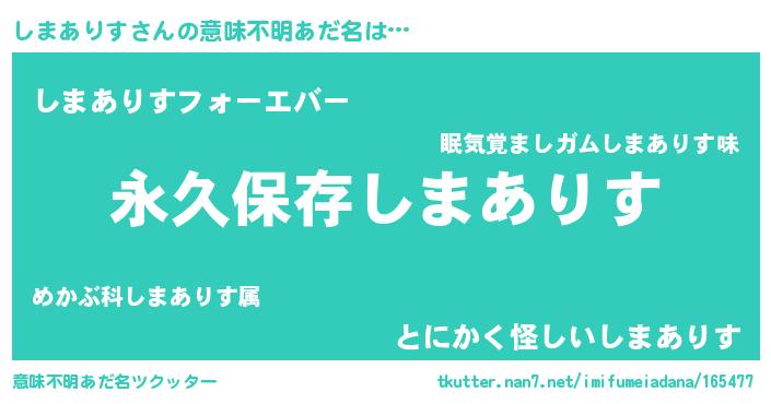 | 胡散臭い通販商品みたいなあだ名 | 『絶対に幸福をもたらす健康食品…その名も「しまありす」』 |