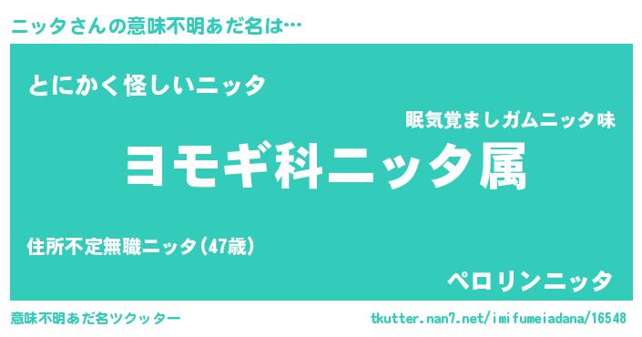 男性向けラノベタイトル風あだ名 | 『ニッタに滅ぼされるだけの簡単なお仕事です』 |
