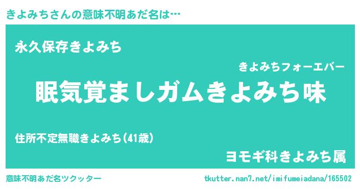 | ヘコむあだ名 | 『きよみち(笑)』『なまこ酢』 |