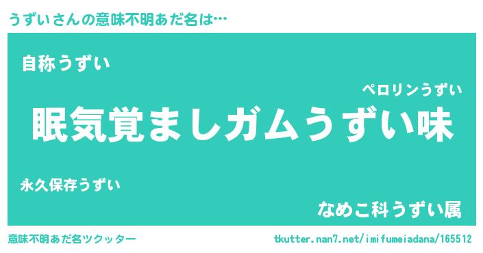 | ヒーロー風カッコイイあだ名 | 『慈愛の使者うずい』『最強戦士ウズイ』 |