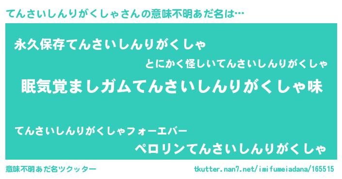 | 胡散臭い通販商品みたいなあだ名 | 『モンドセレクションを受賞した隕石のかけら…その名も「てんさいしんりがくしゃ」』 |